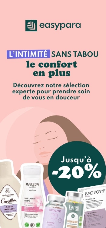 Les données transmises par le biais de ce formulaire sont traitées par EASYPARAPHARMACIE ("EASYPARA") en sa qualité de responsable de traitement, aux fins de gérer votre compte EASYPARA. Vos données peuvent également être utilisées, si vous y avez expressément consenti, afin de vous adresser des informations commerciales personnalisées par e-mail relatives aux activités et produits vendus par EASYPARA. Vous disposez de la faculté d'introduire une réclamation auprès de l'autorité de contrôle compétente, de définir des directives relatives à la conservation, à l'effacement et à la communication de vos données après votre décès ainsi qu’un droit d'accès, de rectification, d'effacement, de limitation, de portabilité et d'opposition pour motif légitime aux données personnelles vous concernant. Pour exercer l'un de ces droits, merci d'effectuer votre demande par e-mail à l'adresse suivante : donneespersonnelles@easyparapharmacie.com ou par courrier postal en écrivant à : EASYPARA - Data Protection Officer - Protection des données personnelles - 47 Boulevard René Cassin - 06200 Nice - FRANCE. Pour plus d’informations concernant le traitement de vos données personnelles, nous vous invitons à consulter notre politique de traitement des données à caractère personnel EASYPARA